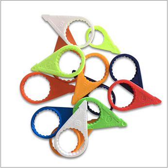 Place one Wheel-Check® over each nut with the raised collar towards the wheel. Wheel-Check® name, number and size should be facing out. Hold the arrow of the indicator pointing in your preferred pattern. Push the Wheel-Checks on with a socket wrench or a PVC pipe